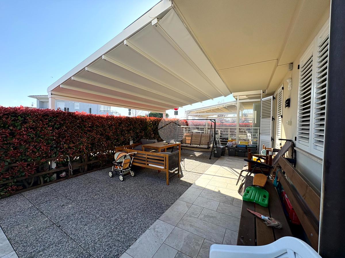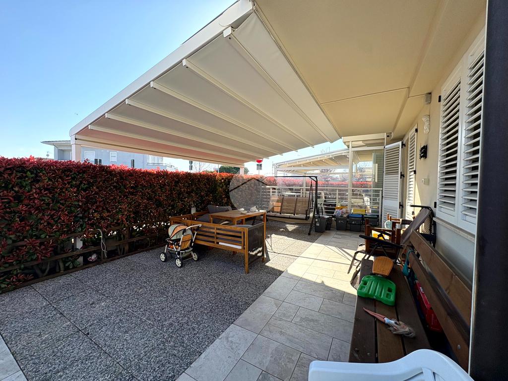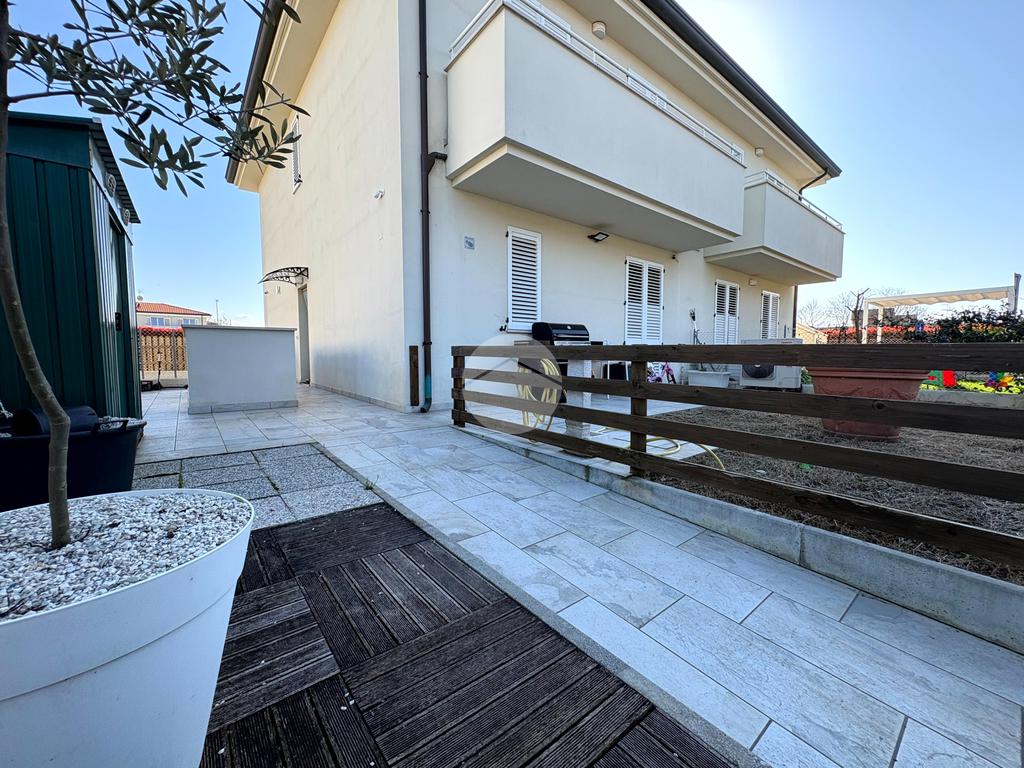 All’esterno, la proprietà è impreziosita da una ampia corte privata piastrellata con accesso indipendente su due vie, perfetta per momenti di relax all’aperto, cene estive o per chi desidera uno spazio esterno pratico e riservato.