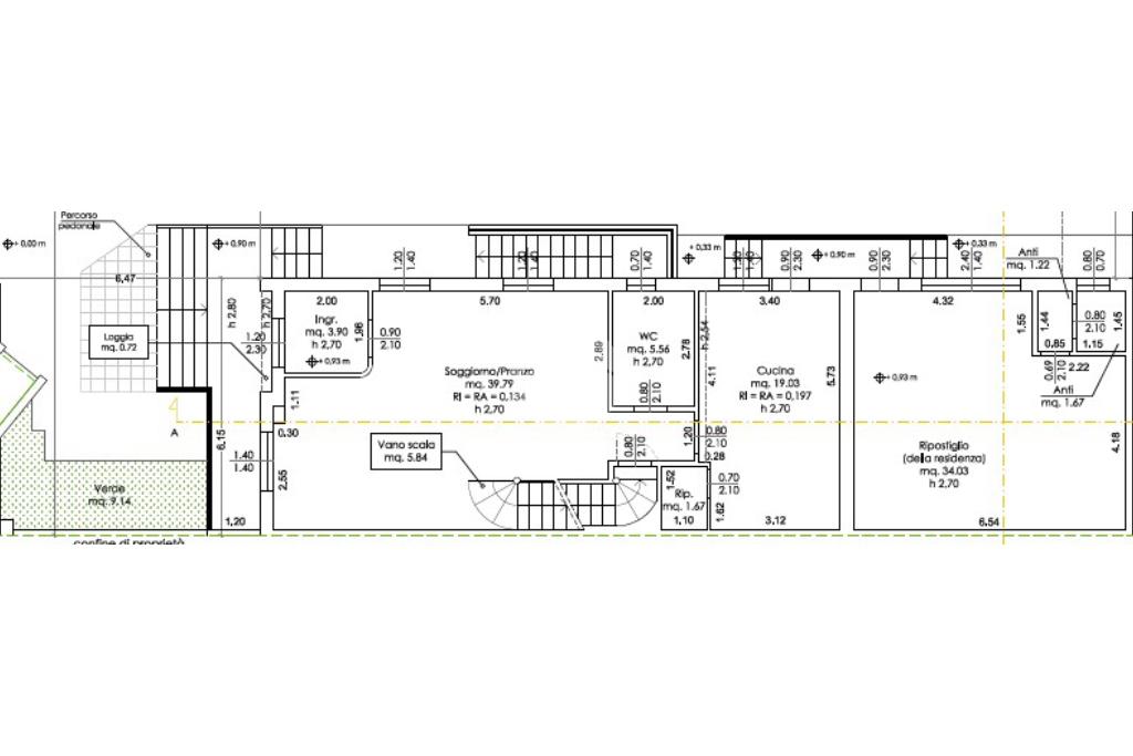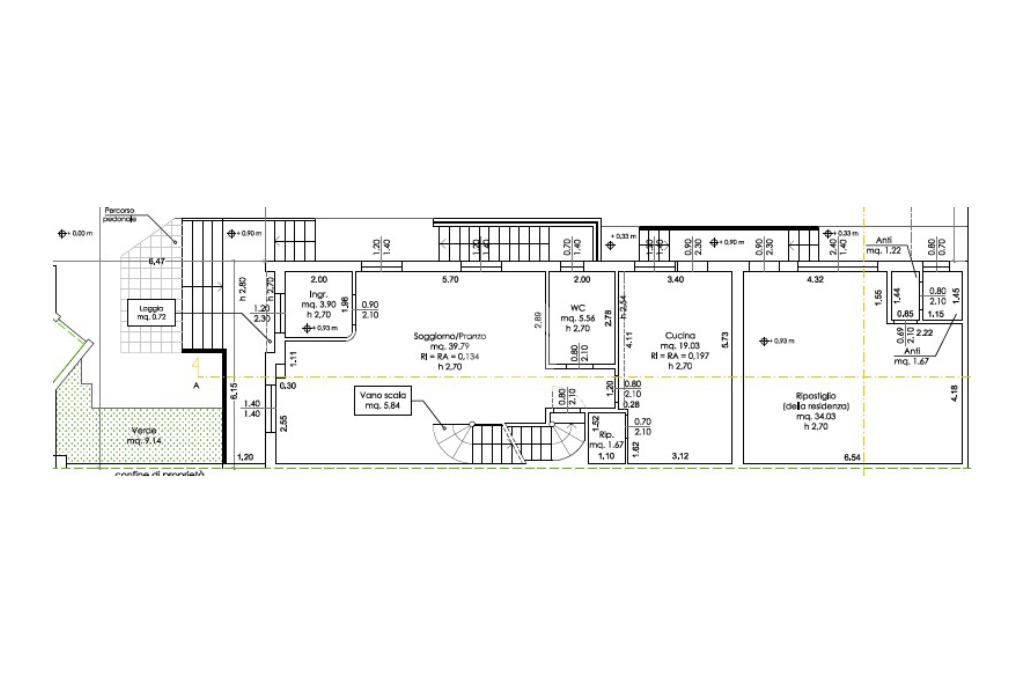 Al piano terra si trova un ampio soggiorno, una cucina spaziosa e un bagno. Oltre a questo troviamo un locale multiuso con ingresso indipendente dotato di autonomo servizio.